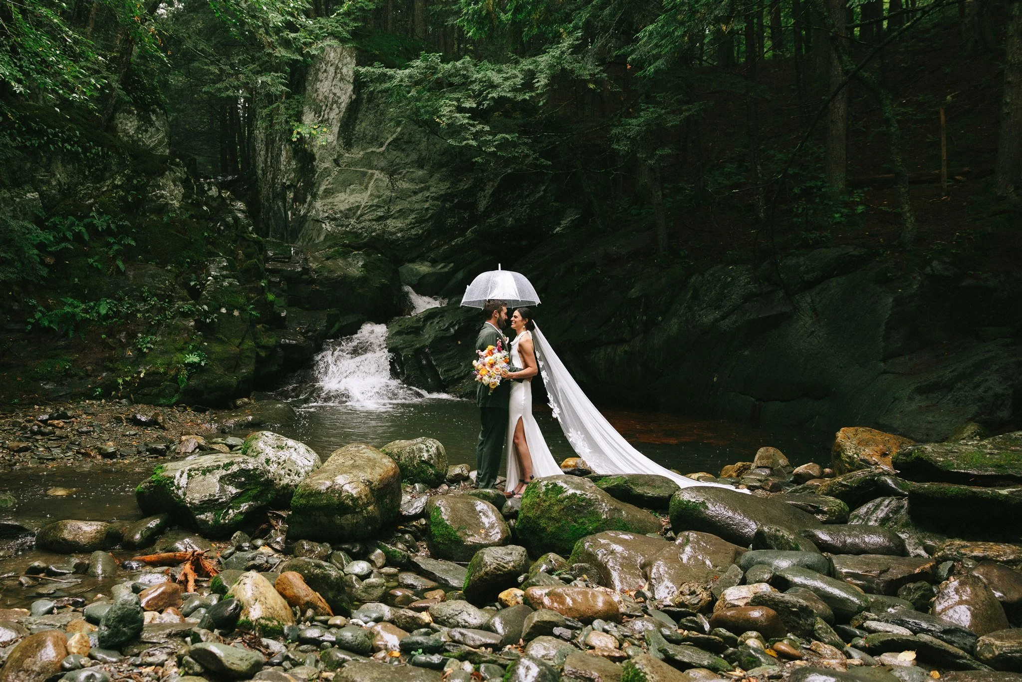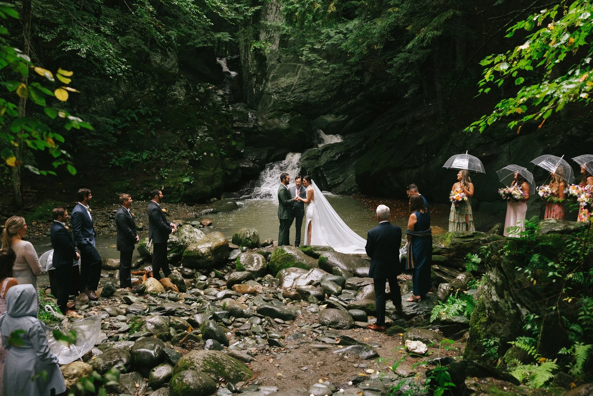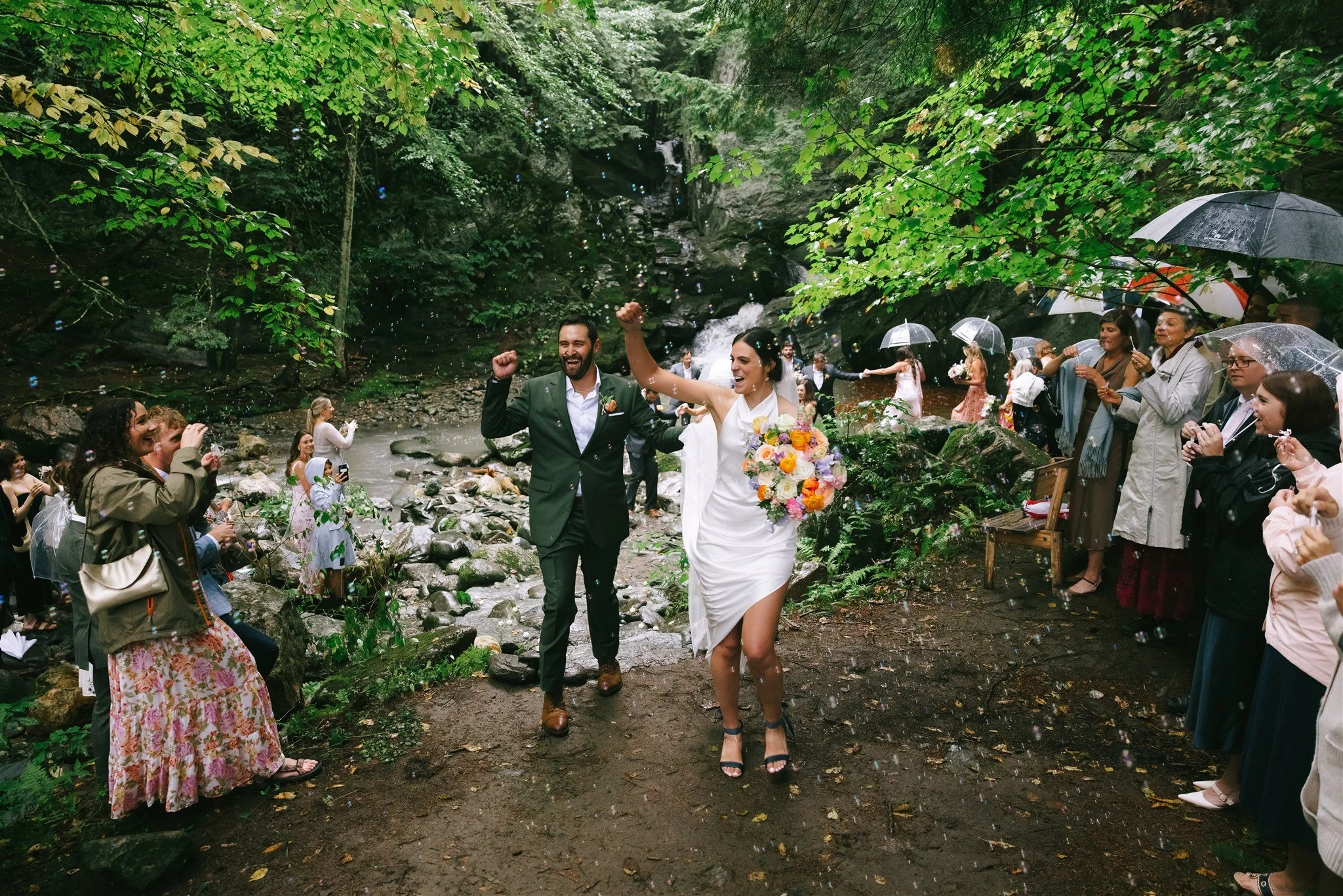 A wildly romantic, rain-soaked celebration at Madbush Falls, where a rushing waterfall set the stage for vibrant, joy-filled florals. Even on the rainiest of days, bold color and natural beauty came together to create something truly magical.